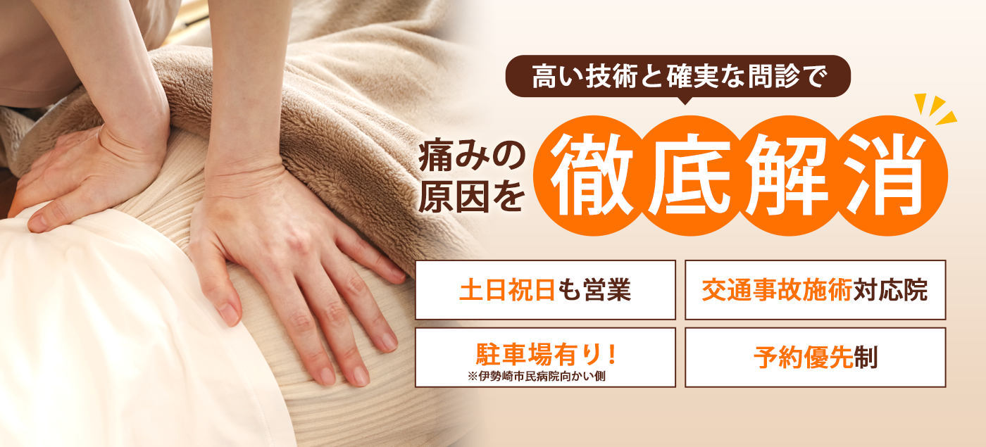 当院では、安全で適切な施術と患者様のコンディションを第一に考えた施術を行っております。問診票をもとに徹底したカウンセリングを行うことで痛みや症状を根本から改善致します。