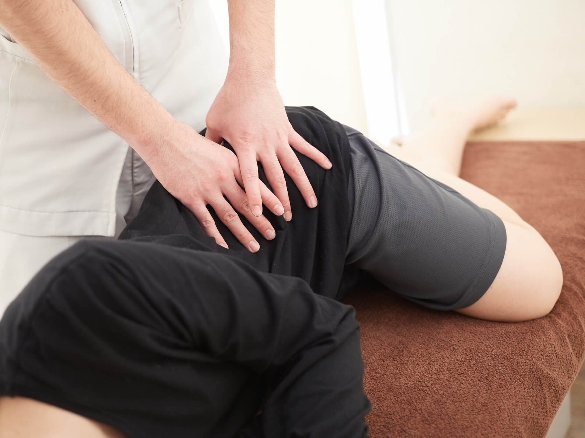 骨格が歪む原因については、普段の生活の中で無意識的に行っている姿勢が関わりやすく、着座する時に足を組む習慣があったり同じ手だけで荷物を持つ習慣などがあります。他にも、正しい姿勢が維持できる筋肉の量が失われる事によりバランスが良好ではない状態になる場合も多いです。